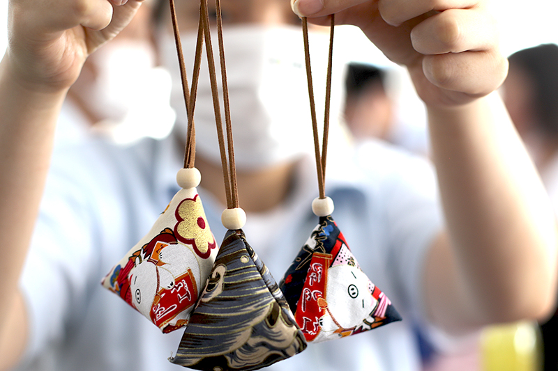 闻着淡淡的香料气味,大家不时交流技巧,或讨论和回忆着自己以前过端午的场景,互相交流着不同的风俗习惯。手作活动结束后,各位纷纷向镜头展示自己的作品,现场充满了欢快的气氛。